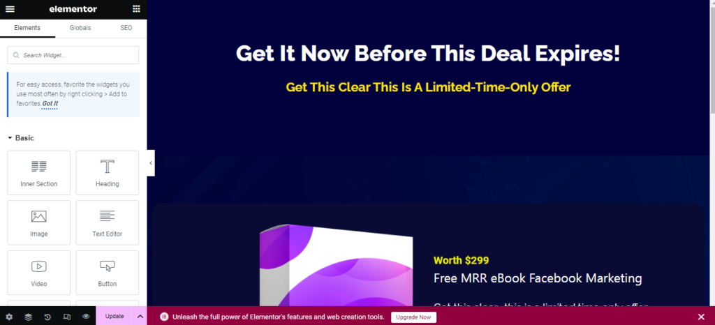 Setiap halaman funnel yang anda buat bisa diedit hanya dengan menggunakan Elementor Free.