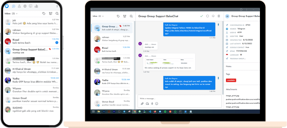 ✅ WhatsApp, Instagram, Telegram, Facebook Messenger—semua dalam satu dashboard.