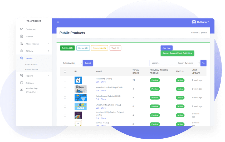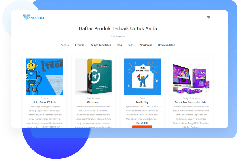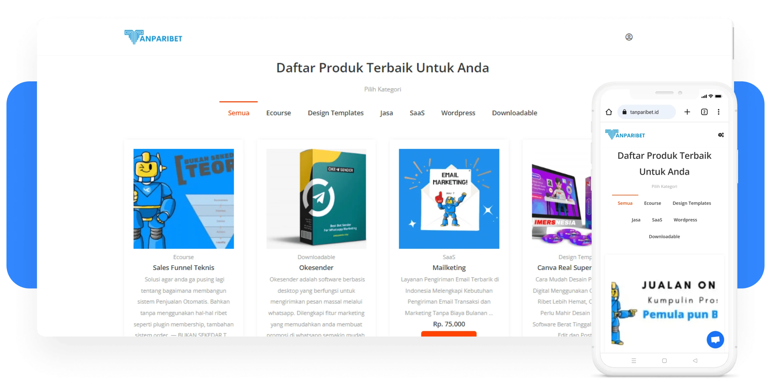 Dengan bergabung ke dalam platform Tanparibet anda akan memiliki Toko Online Langsung Terisi Produk Digital dari Berbagai Vendor