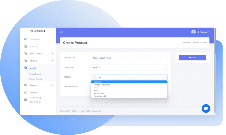 Dan Jenis Produk yang dijual seperti layanan, ecourse, ebook, downloadable product, template design dan asset digital lainnya