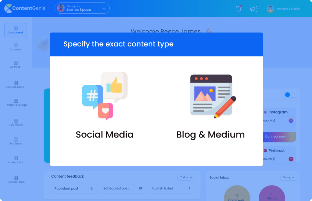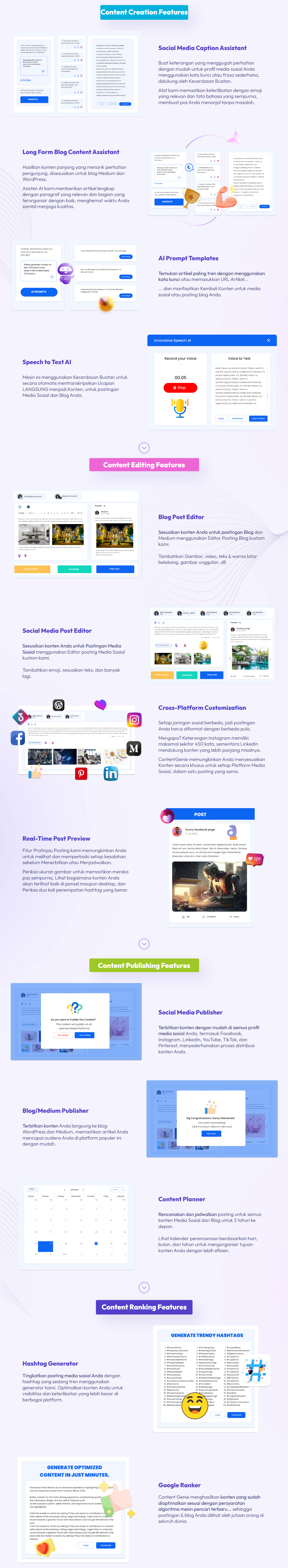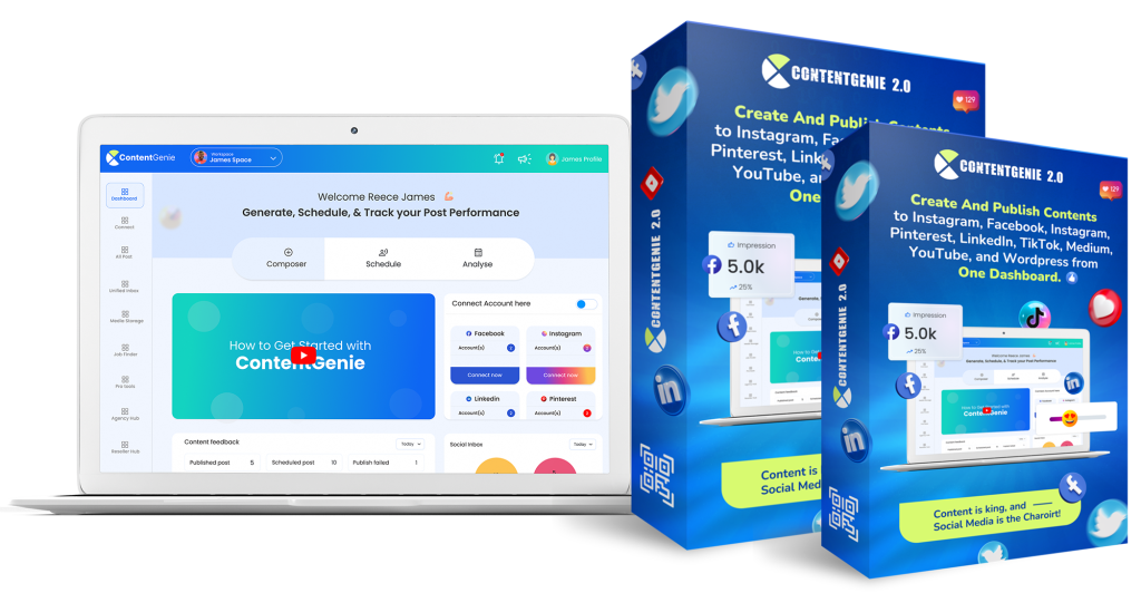 ContentGenie 2.0 adalah World’s FASTEST Content Creation & Social Media Management Platform Untuk Membuat, Schedule & Publish 100% Original Content Ke Facebook, Instagram, TikTok, YouTube, LinkedIn, Pinterest, Medium, & WordPress Langsung Dalam 1 Dashboard.