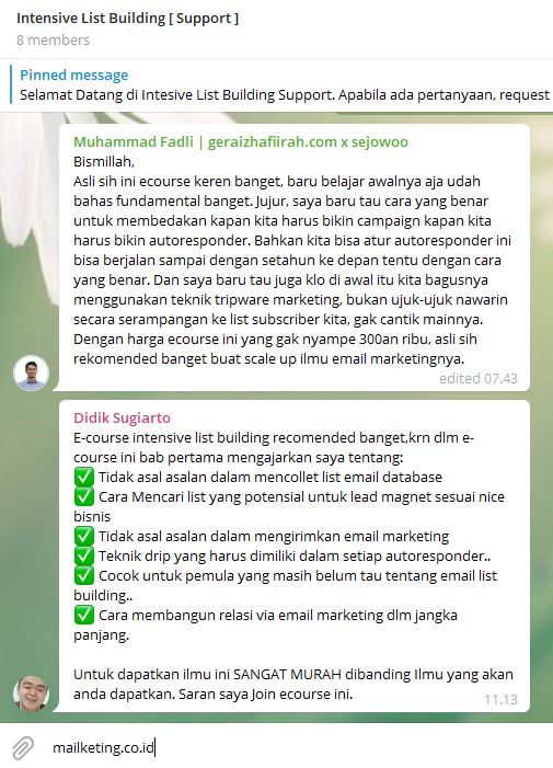 Eiiitss, tunggu dulu! Sebelum memutuskan untuk bergabungĀ Silakan simak apa kata mereka, yang sudah mengikuti Ecourse Intensive List Building