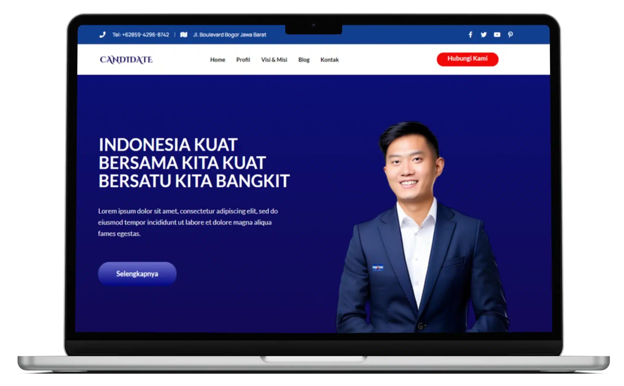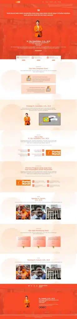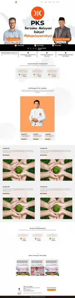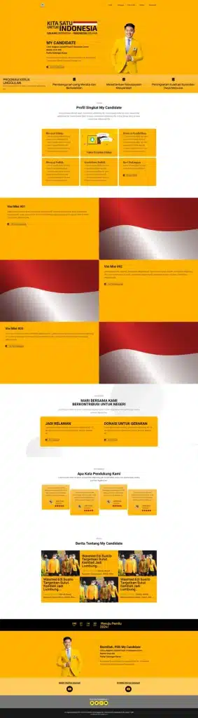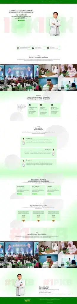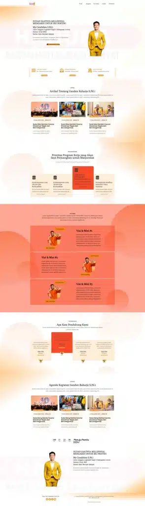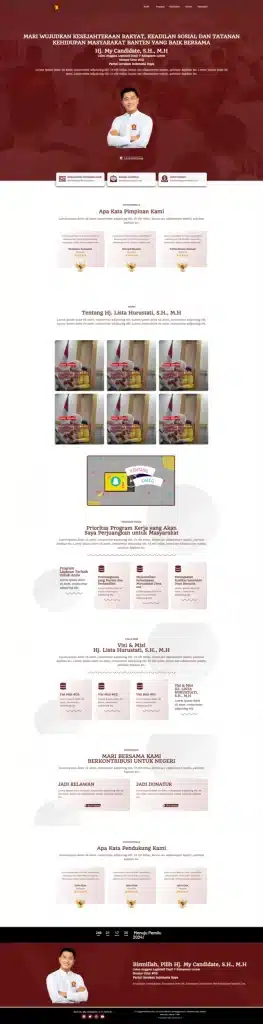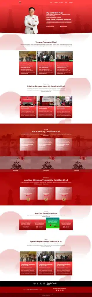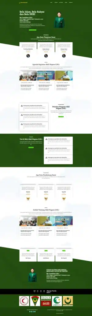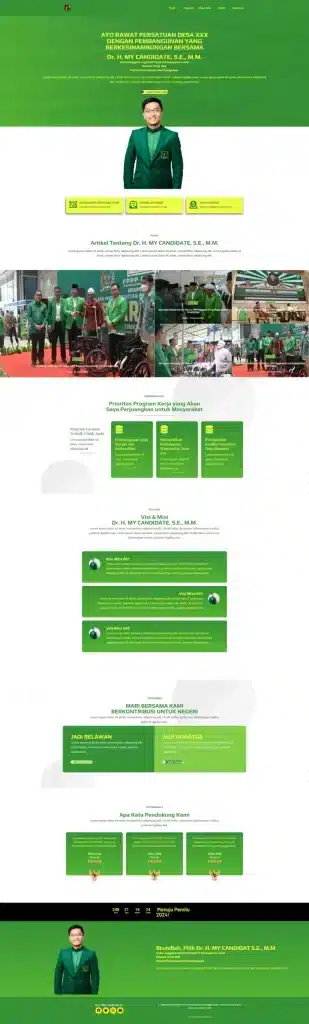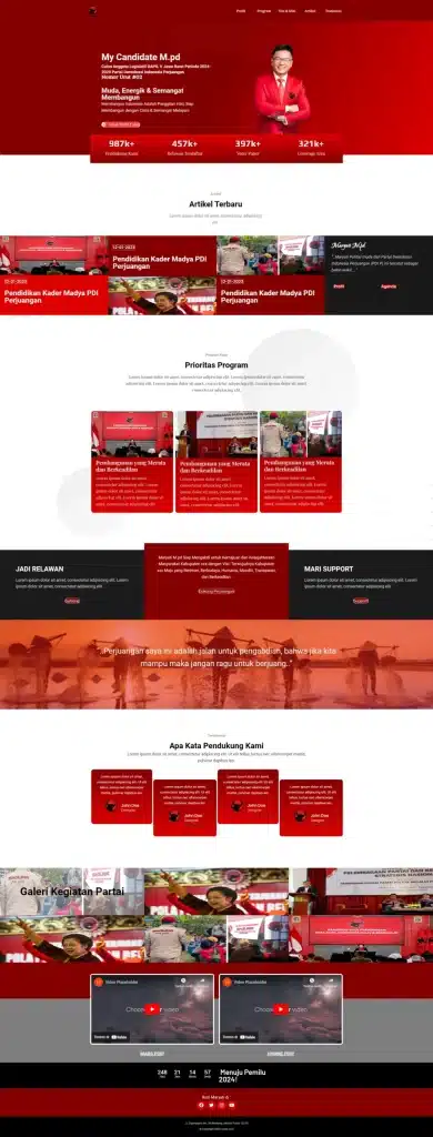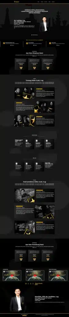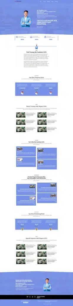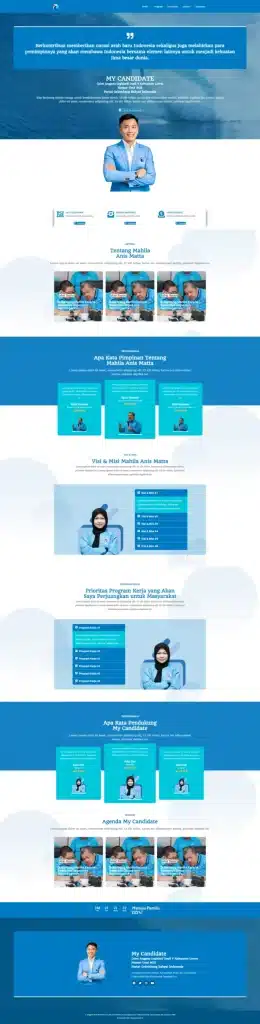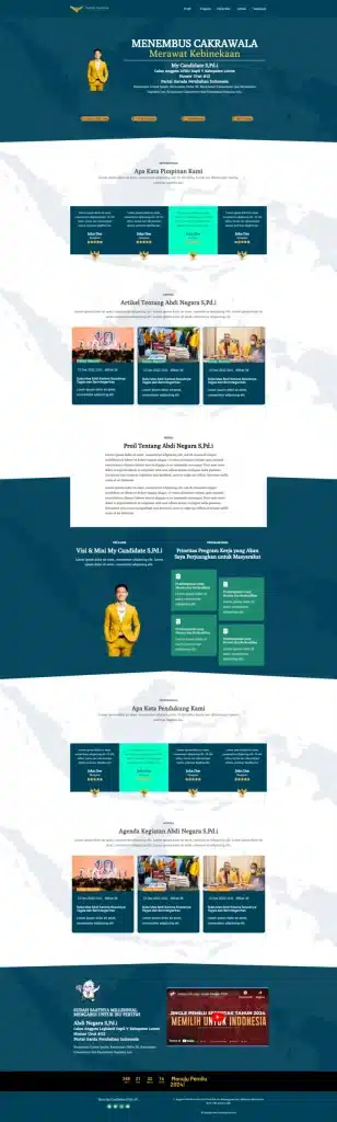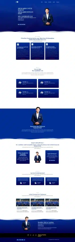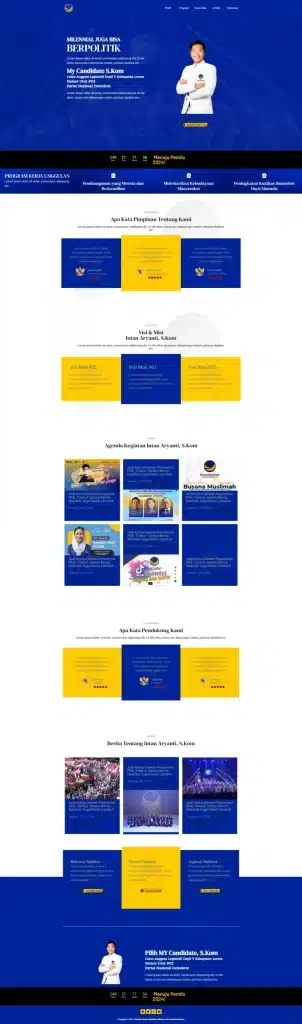 Template website instan yang dirancang khusus website kampanye pemilu Caleg dengan design yang profesional dan elegant, Template Elementor sudah berisi FULL PAGE beberapa page diantaranya