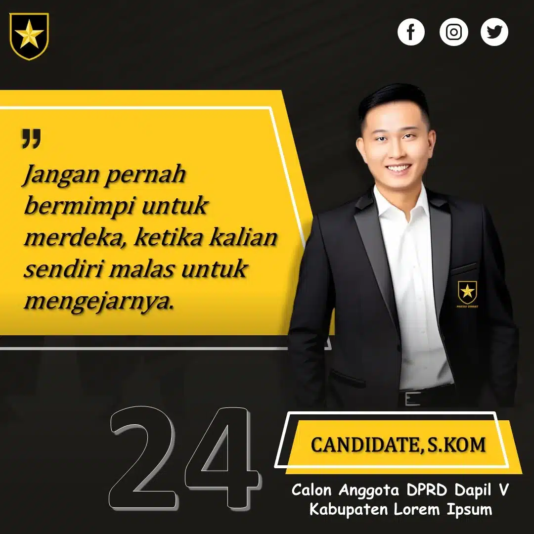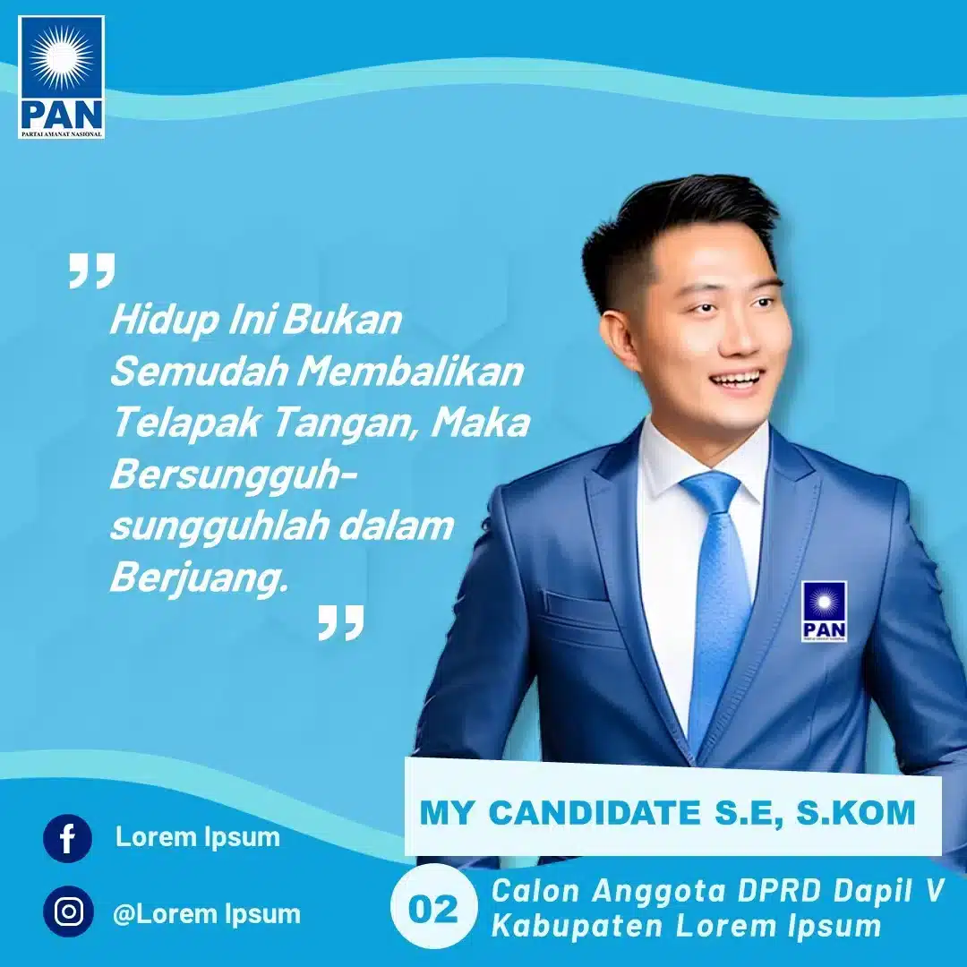 MY CANDIDATE adalah produk digital berupa template desain untuk keperluan Promosi Politik