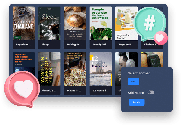 Dengan editor drag and drop kami, Anda dapat dengan mudah membuat dan menyesuaikan Storie Anda dalam hitungan menit.