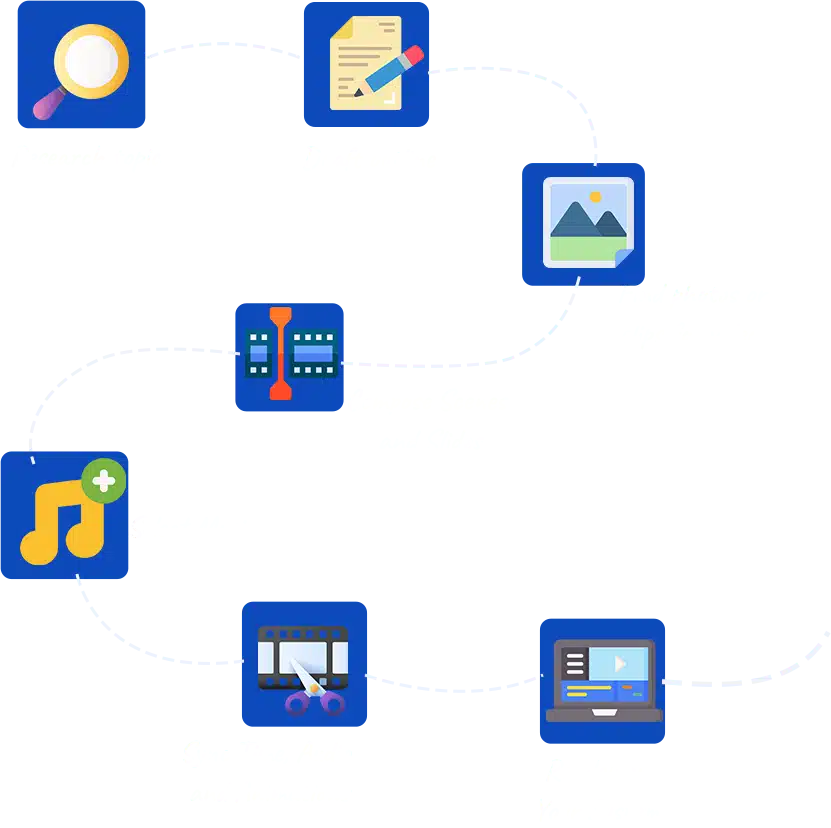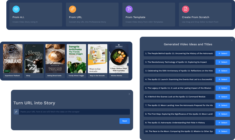 A.I akan secara otomatis menulis content atau scrape data, meringkasnya, dan membuat scenes dengan media dan animasi kurang dari 1 menit.