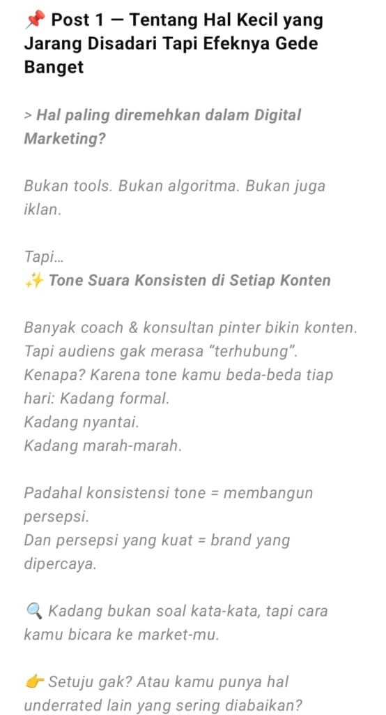 π‘ Dalam 5 menit β Konten copy + visual siap tayang!
