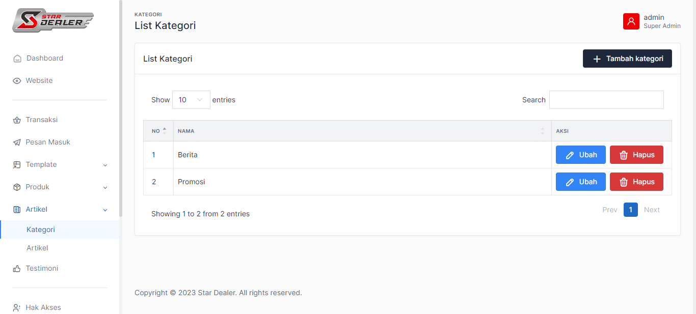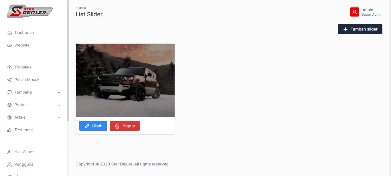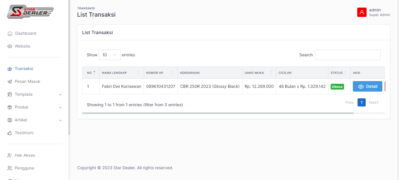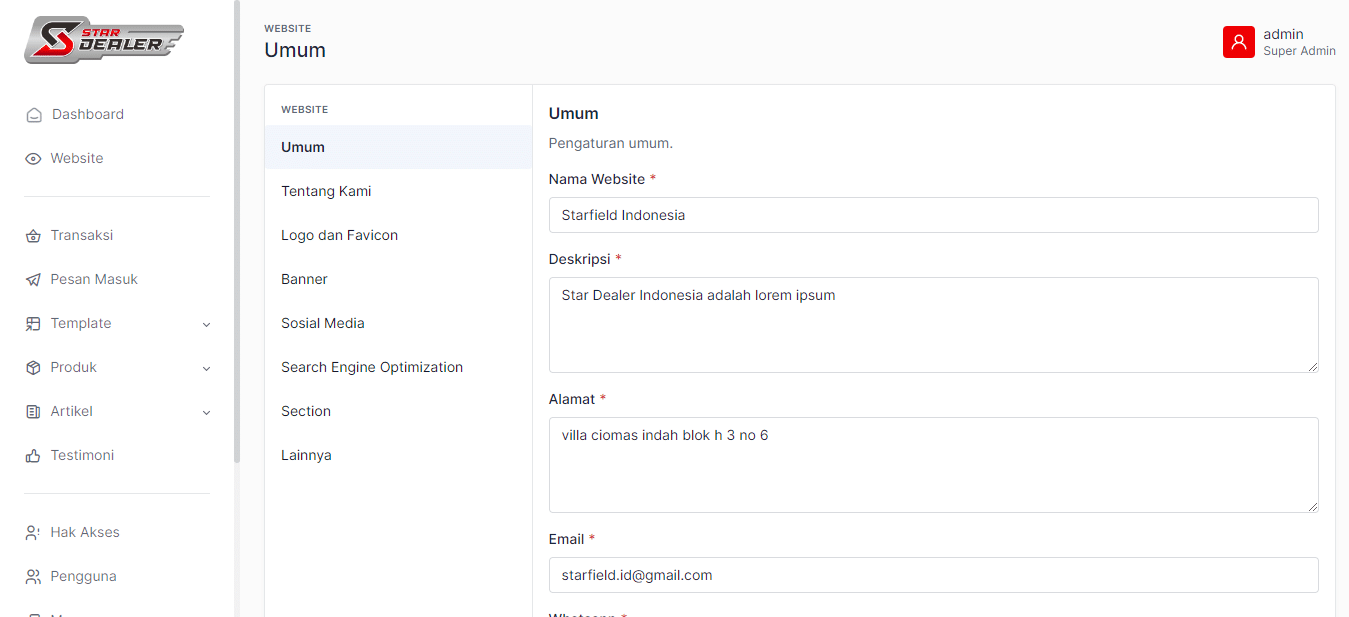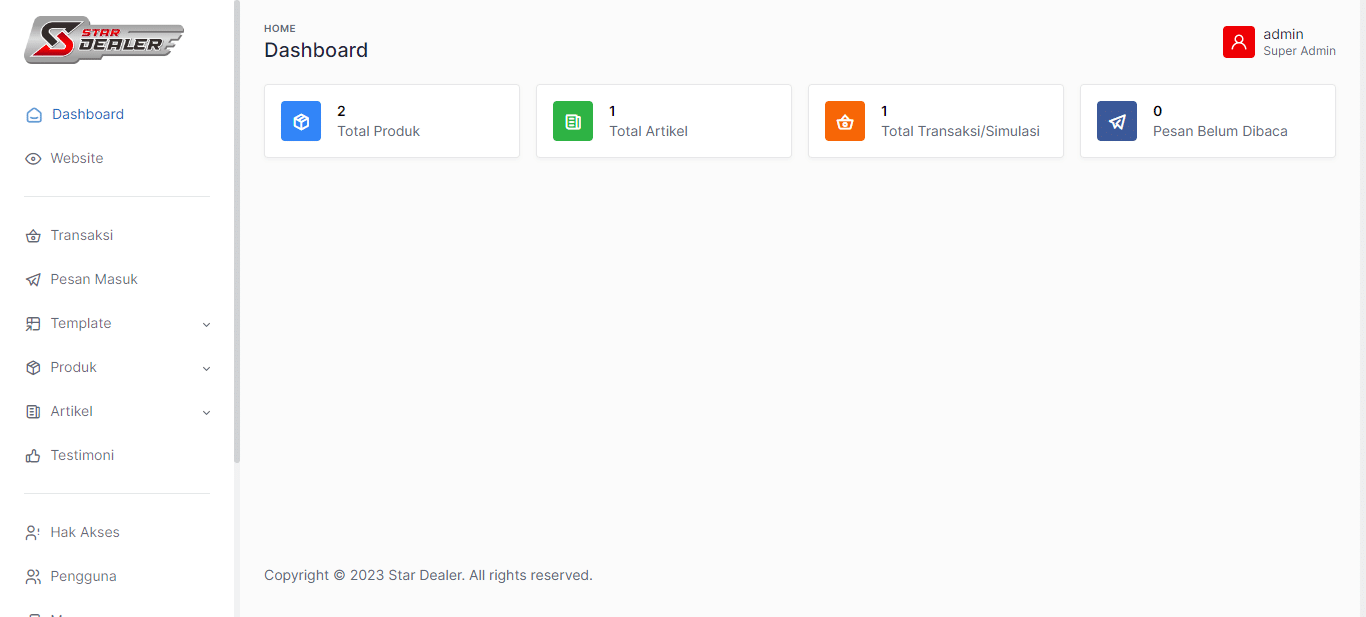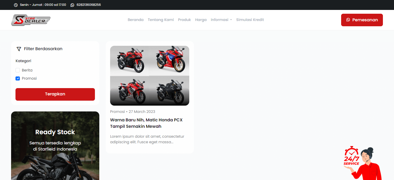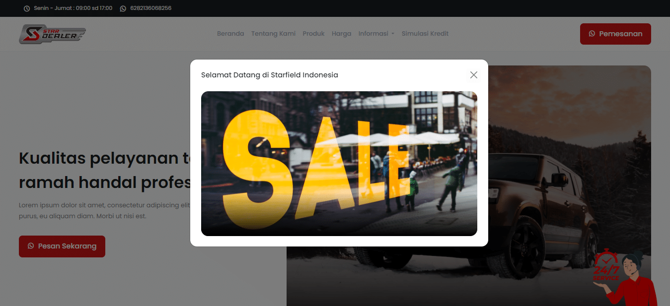 Jangan sampai ketinggalan promo hari ini! Dapatkan segera Stardealer untuk membuat website dealer yang menarik dan efektif. Stardealer ini mudah digunakan dan tersedia dalam berbagai paket yang disesuaikan dengan kebutuhan dan anggaran Anda.