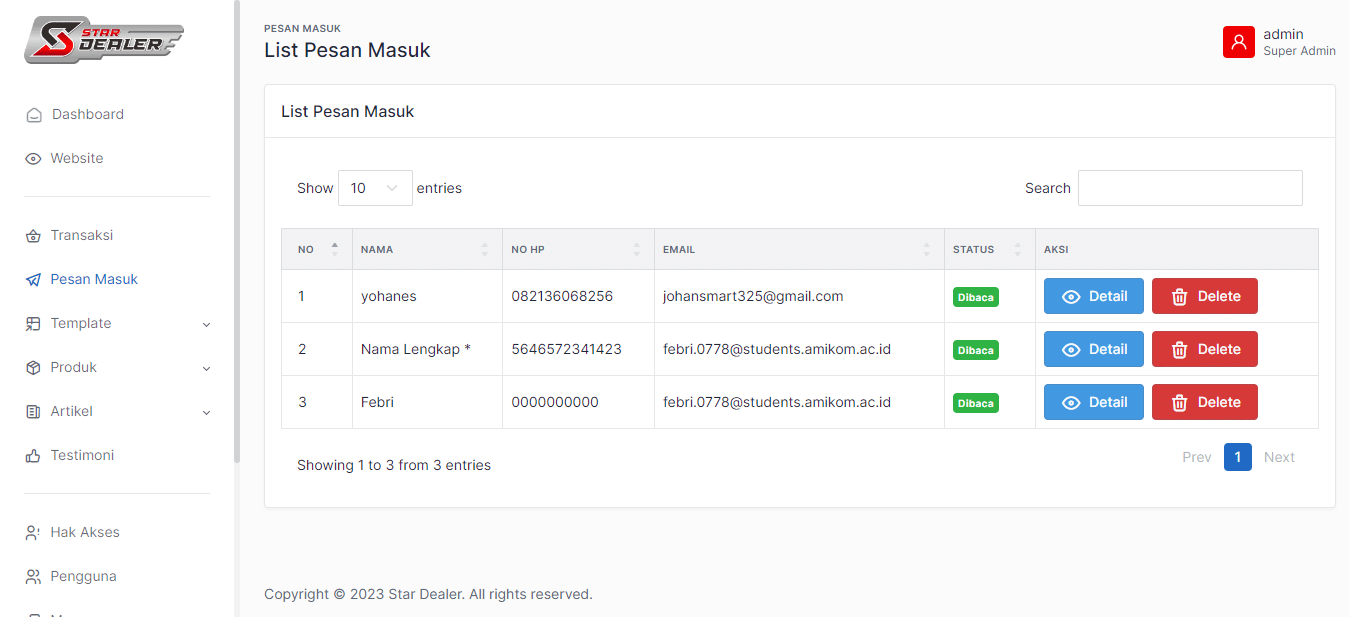 Memudahkan admin melihat pesan yang dikirimkan oleh calon pelanggan anda.