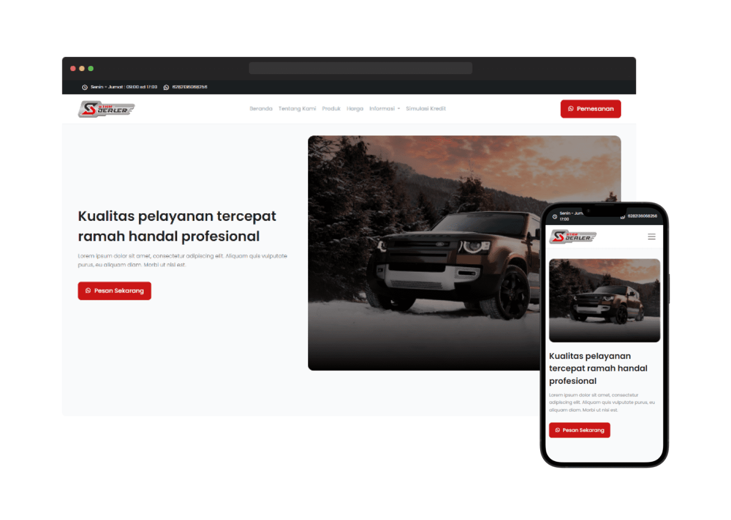 Stardealer juga memberikan desain responsif dan SEO-friendly untuk website dealer Anda. Dengan begitu, website dealer Anda dapat dengan mudah ditemukan di mesin pencari seperti Google dan mudah diakses dari berbagai perangkat.