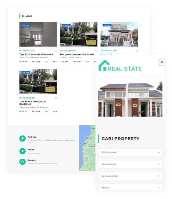 Dengan memiliki website, peluang usaha property anda akan terlihat profesional, dan lebih memudahkan para calon customer untuk melihat listing property milik anda.