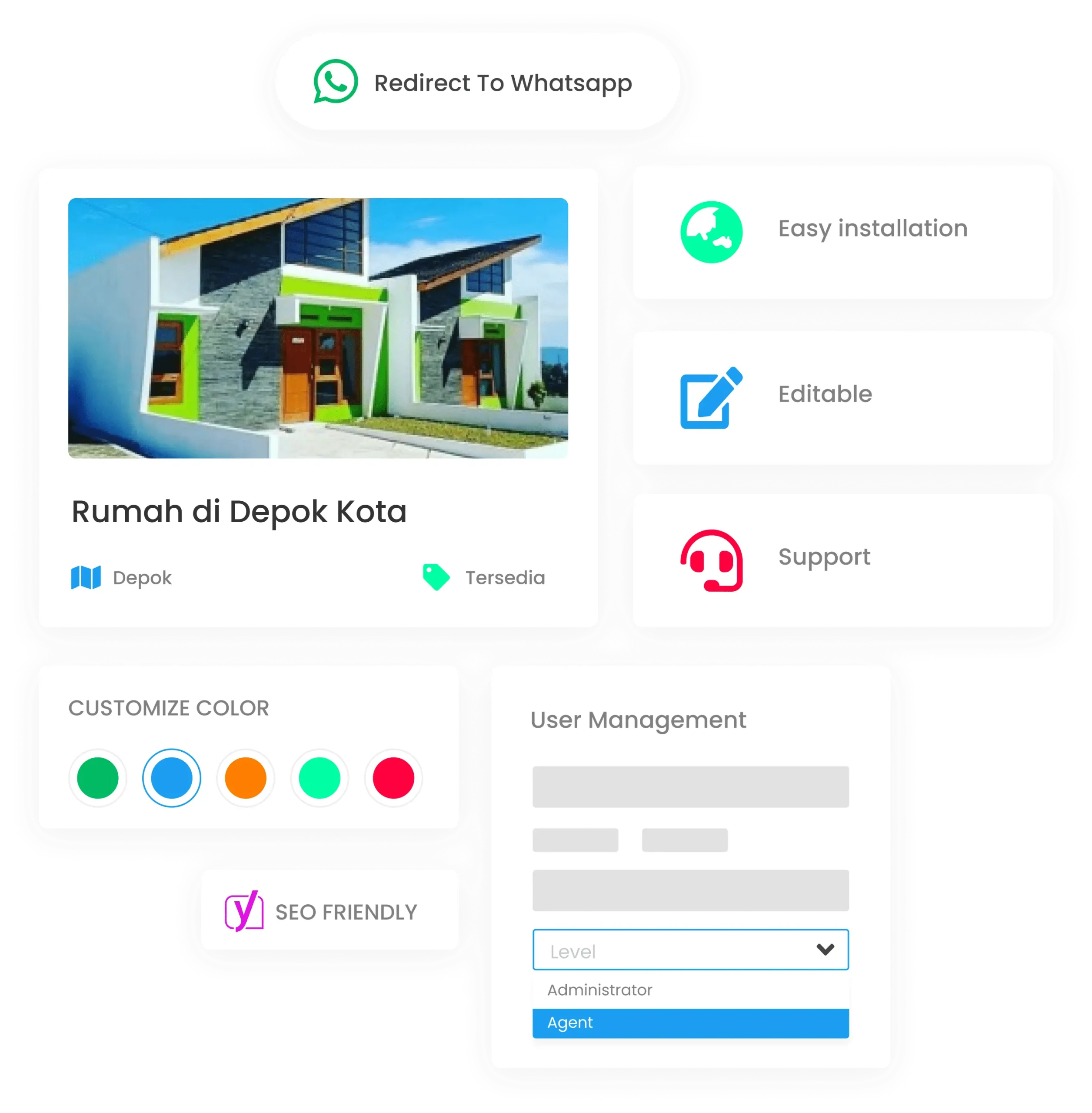 Anda dapat menghemat biaya pengembangan website property dari awal dengan memiliki Starproperti. Anda hanya perlu menginstal script dan menyesuaikannya dengan tampilan warna yang anda inginkan.