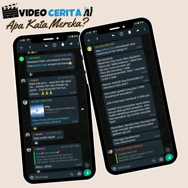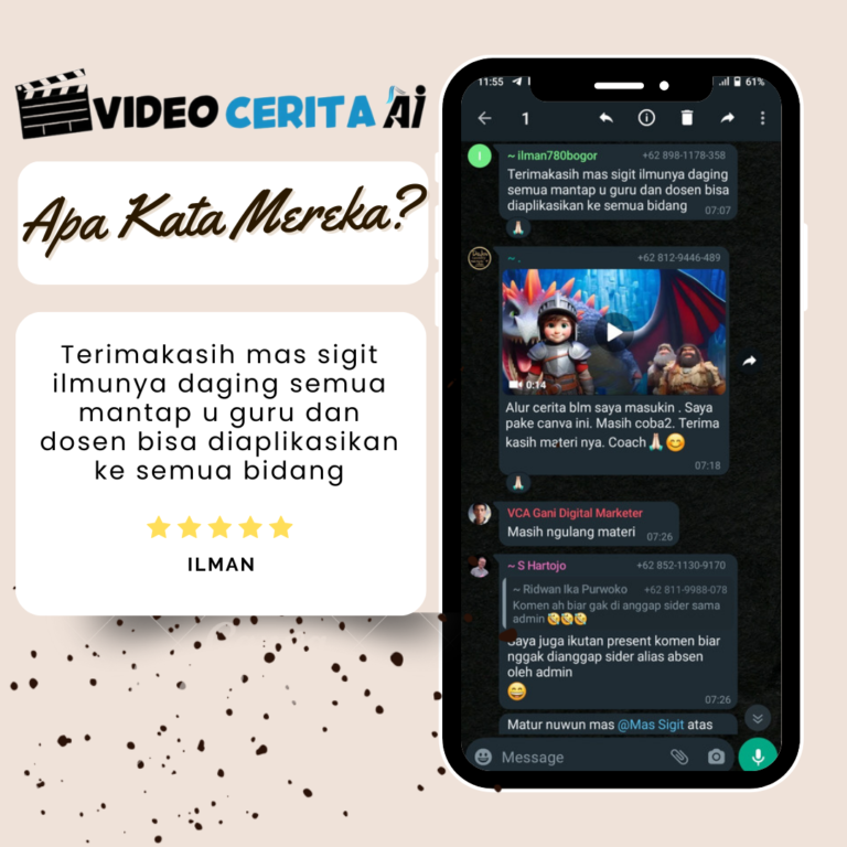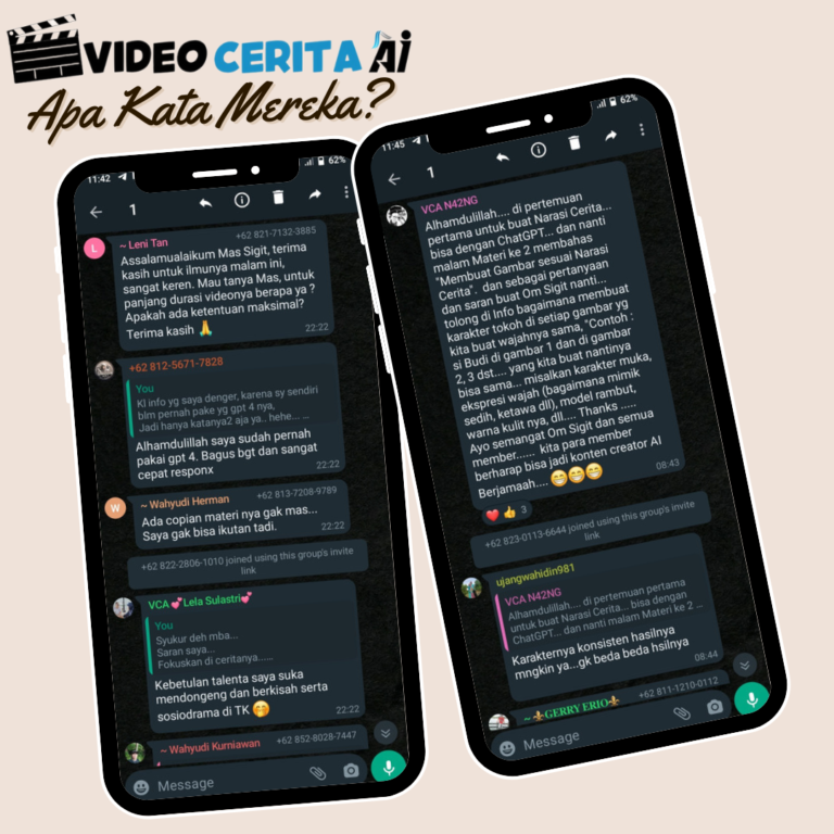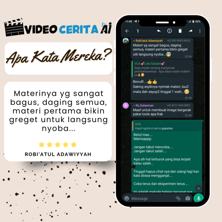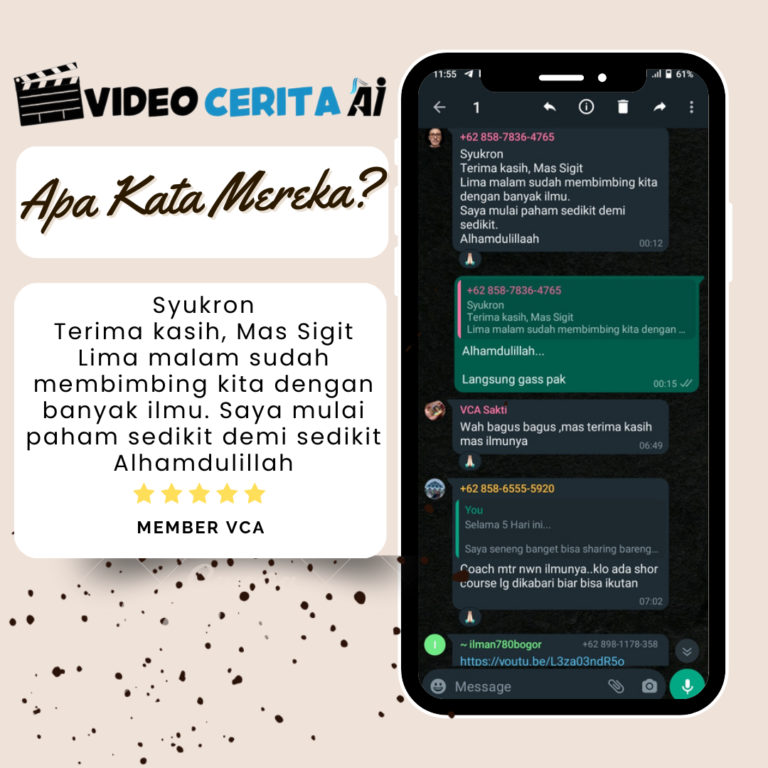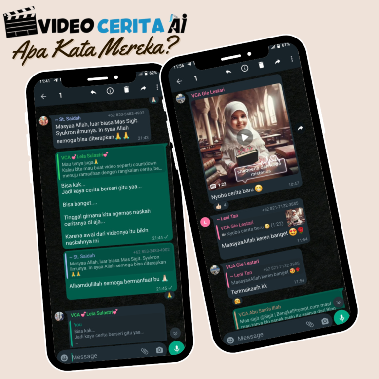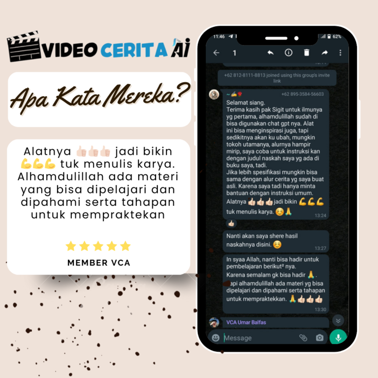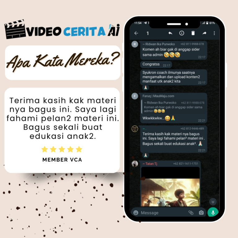 - Dalam Video Cerita AI, kami tidak menjanjikan Hasil Instant. Baik itu Hasil Karya Video Maupun Penghasilan. Semua Tergantung Kerja Keras, Ketekunan dan Seberapa Besar Anda Mengeluarkan Effort Untuk Praktek. Produk yang kami tawarkan ialah berupa tutorial dan prompt.