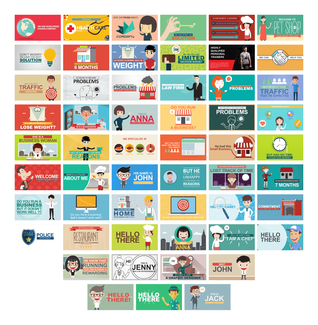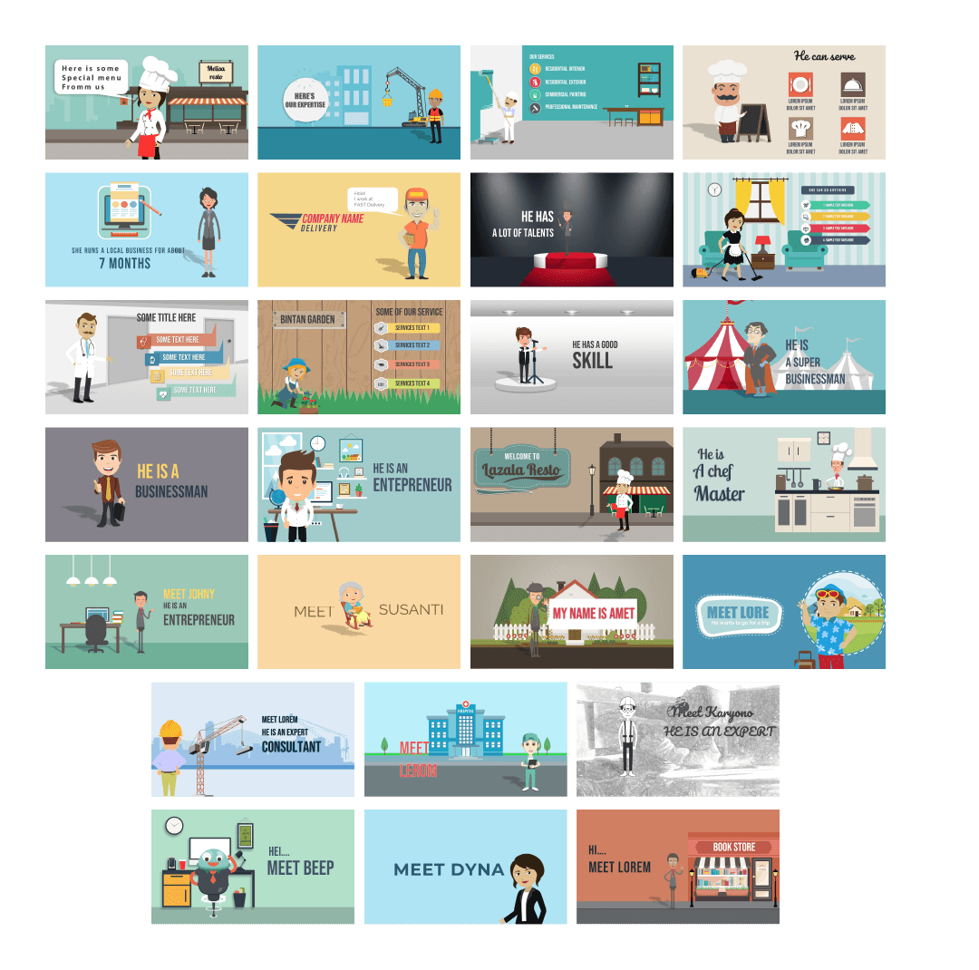 Template PowerPoint lengkap yang menyederhanakan pembuatan video animasi. Buat video profesional dengan mudah menggunakan interface PowerPoint yang familiar.