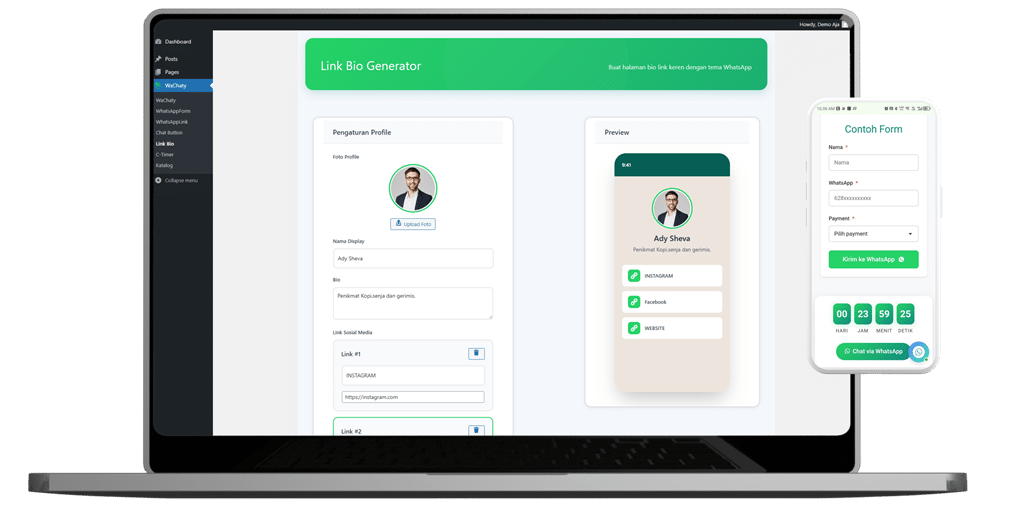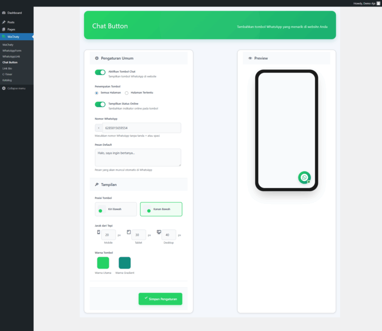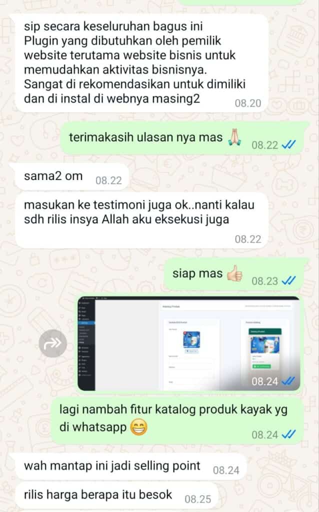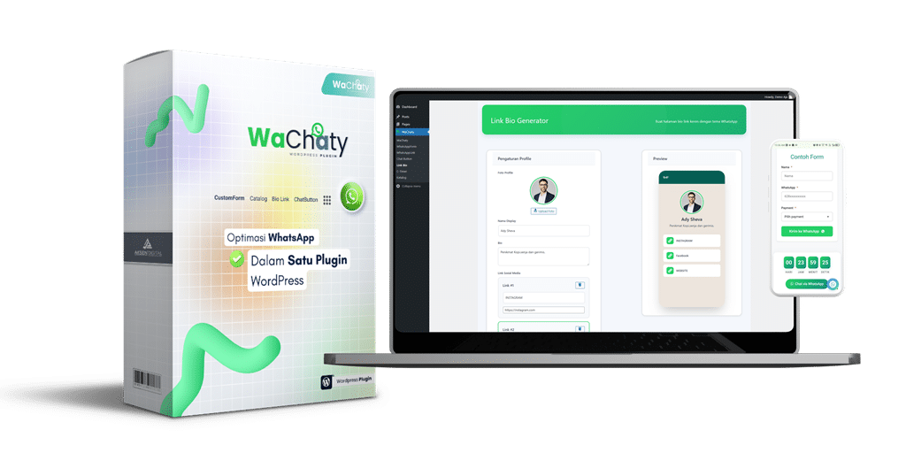 Sebuah plugin wordpress yang dirancang untuk membawa bisnis Anda ke level berikutnya. Dengan fitur-fitur premium yang mudah digunakan, Anda dapat memudahkan proses penjualan melalui whatsapp, meningkatkan keterlibatan pelanggan, juga menghemat waktu & operasional.